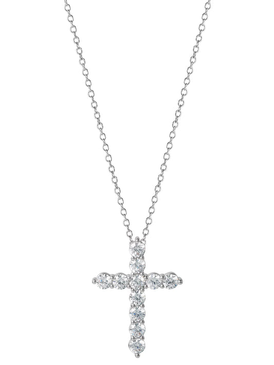 Fine Siver Plated Brass Cubic Zirconia Cross Pendant, 18" + 2" Ext Chain